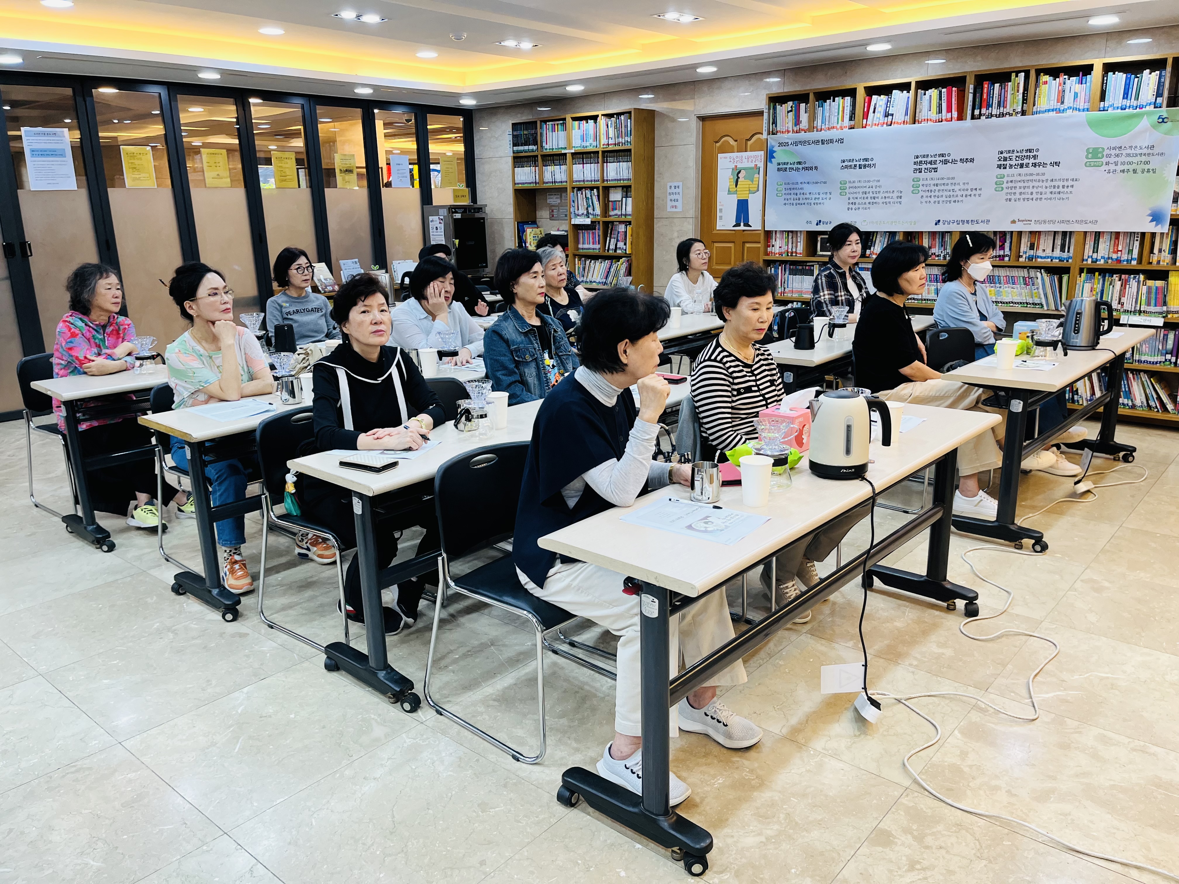 -슬기로운 노년생활-1차 취미로 만나는 커피와 차 강의가 참석자분들과 함께 했습니다커피도 내리고 시음하면서 늘 마시는 커피에 관해 강의를 들었었습니다. 모두 행복해 하시면서 커피와 함께하는 시간을 즐기면서 다음강좌를 기대하셨습니다2차는 취미로 만나는 커피와 차중 '차'입니다