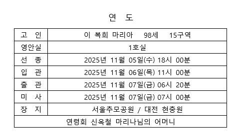 2025.11. 5 선종안내: 이복희 마리아(15구역)