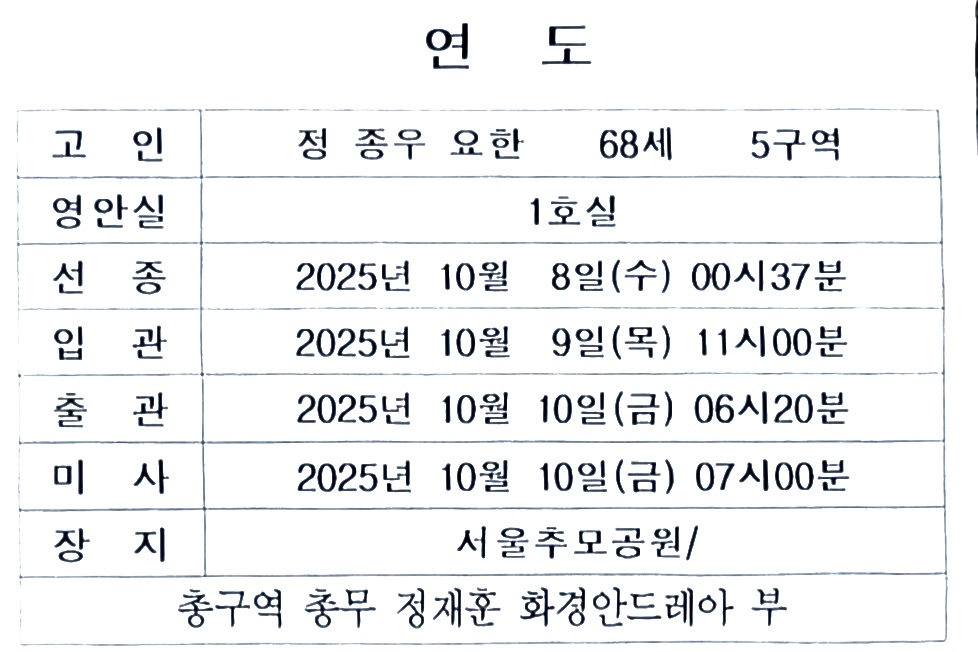 2025.10. 8 선종안내: 정종우 요한(5구역)