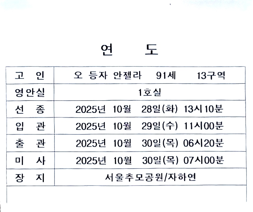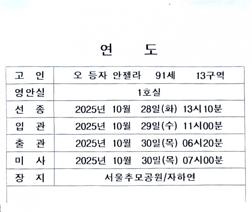2025.10.28(화) 선종안내: 오등자 안젤라 (13구역)