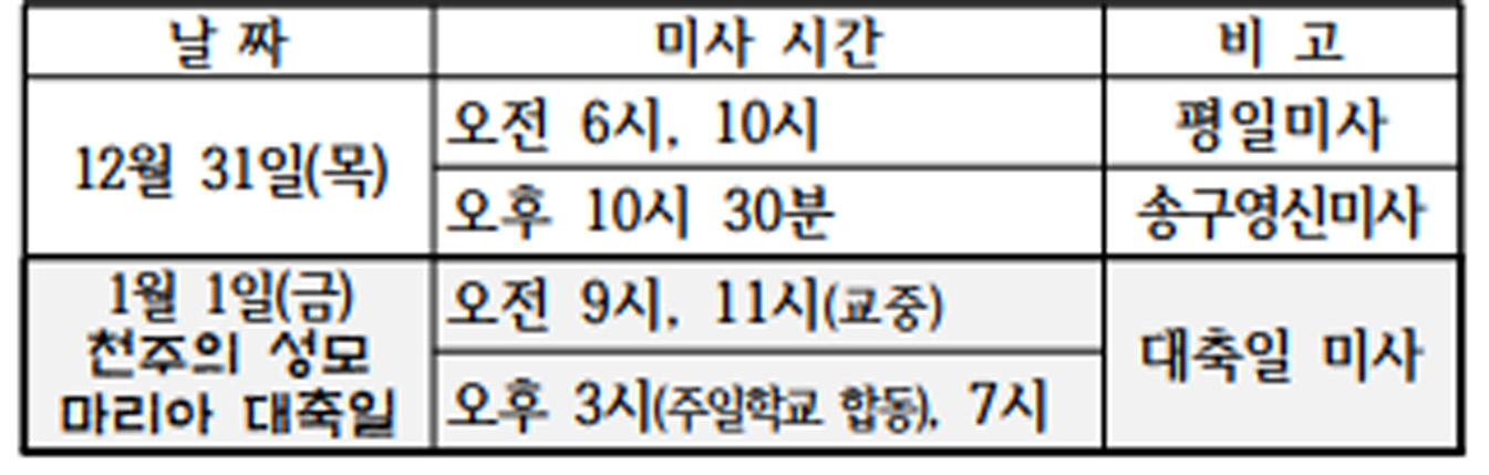 송구영신미사 & 천주의 성모마리아 대축일 미사 안내